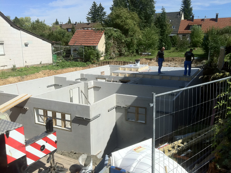 Auslieferung eines Fertigkellers in einem Wohngebiet